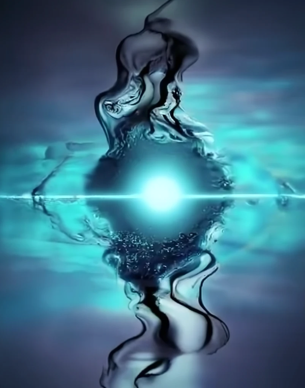 The Water of Life is a metaphor to help visualize and conceptualize how existence is expressed into form. First we have the raw, unlimited potential we call Æther or energy. This energy is unrealized creative potential and can be visualized as a sea or "the water". Now introduce a frequency (droplet) and the water is disturbed forming a circular waveform. If there is one ring formed, it can be the basis of either a hydrogen or helium atom. Try to imagine that droplet as being a standing frequency which agitates or perturbs the water causing the center to oscillate pulsing up and then plunging back down into the water at a fixed rate. This rate is the frequency that forms a structure we call an atom. The circle produced around the center is the displaced energy wave that forms an outer membrane we call the atomic shell. The center is the anchor of the oscillating modulation of energy we call that the neutron. The up and down motion is the charge or direction of energy flow or electron and proton. This is all essentially vibration, movement or sound. An oscillating frequency. The amplitude of this frequency within its containing circular waveform shell defines its resonant frequency, this determines how many rings are produced defining the structure of the atom. So when there is a single frequency "droplet" oscillating up and down, that is what we call a hydrogen atom. It has one nucleus (point of origin), one proton (maximum perturbation crest), and one electron (maximum perturbation trough). Now, if we add another harmonic frequency that is expressed as a sympathetic interval beyond the existing resonating oscillation at the same point of origin, the structure will cymatically reconfigure its geometry and form an additional oscillating perturbation that harmonically compliments the existing hydrogen oscillation, forming a new geometric structure we call the helium atom. One shell with two oscillating perturbation points. As additional sympathetic intervals are added, additional rings are formed creating new atomic structures all concentrically layered, oscillating as a harmonic musical symphony. All atoms are manifested as 3D spherical structures inside a sea of energy. All atomic matter is expressed as sympathetic harmonic oscillation forming geometric structures that are the quantum building blocks of the materium.