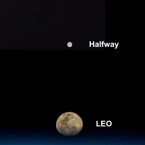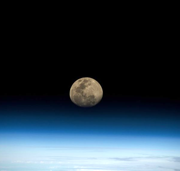 The moon photographed from the ISS in Low Earth Orbit.